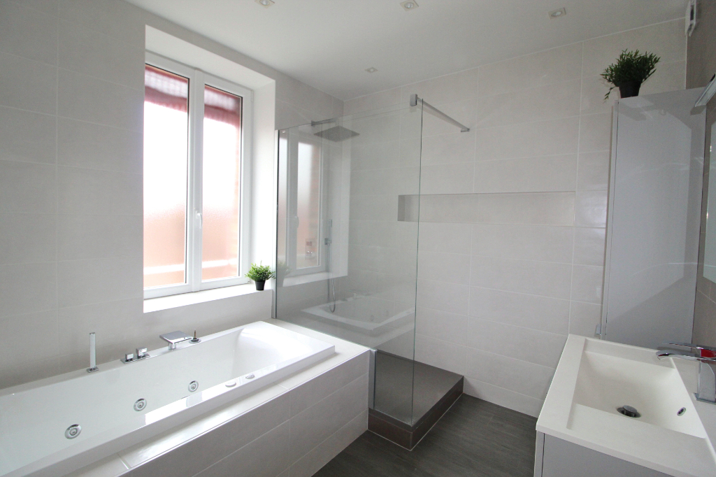 1 salle d'eau (douche et WC) et une grande salle de bains (bains à remous, douche à l'italienne) et wc séparés sont accessibles pour tous les co-locataires.
